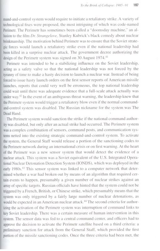 To sum it up the “Perimetr” system is not a Apocalyptic Doomsday Machine , but a way to ensure that Soviet/Russian leadership do not take hasty fatal decision due to constrains of time.