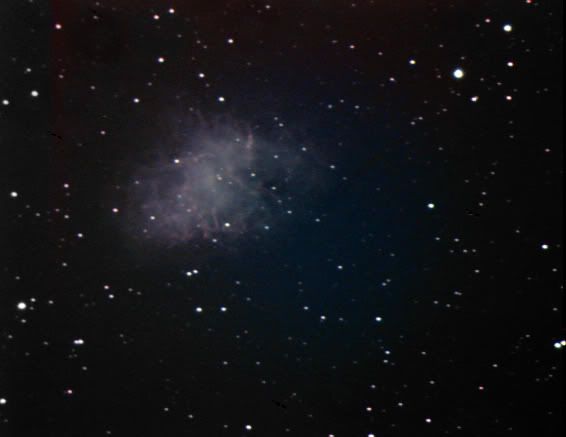 This is M1 (The Crab Nebula). This is what is left of a star that went Super Nova in our own galaxy. Light from the Super Nova reached us in 1054 and it was visible in broad daylight for several days.